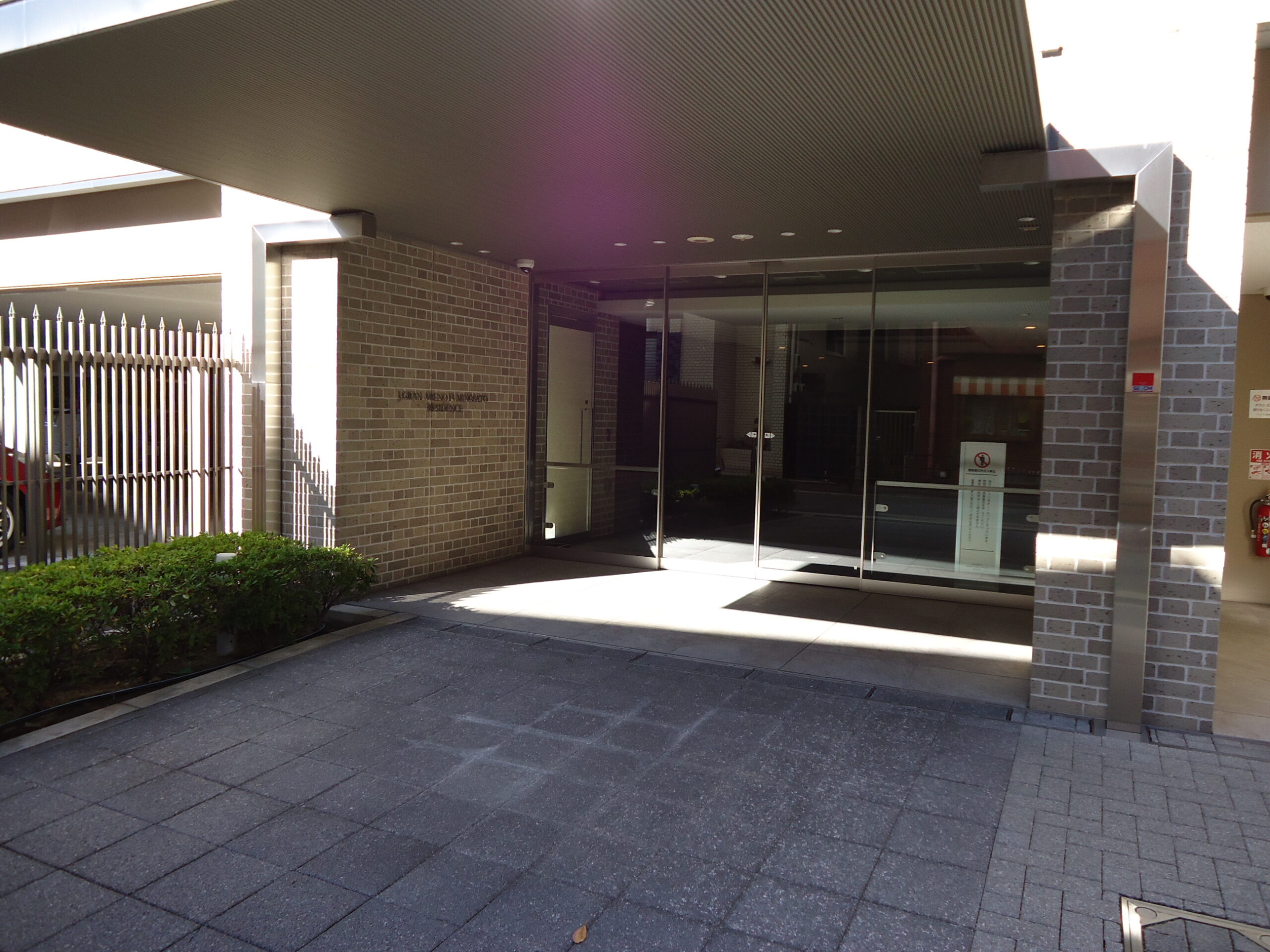エントランスはガラス張りのドアや長い庇はグレード感をも感じさせます。