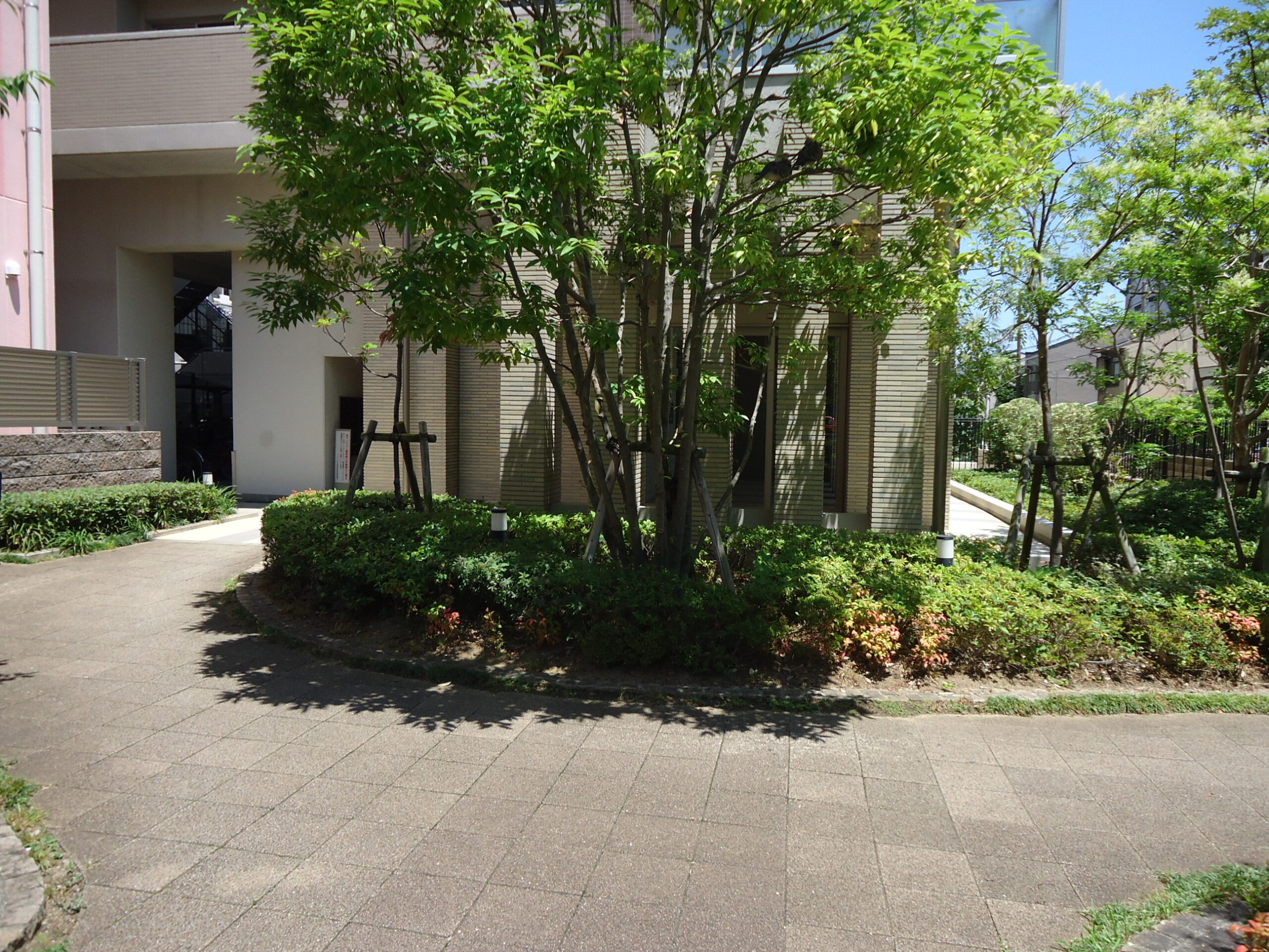 あびこ筋に面するロケーションでありながら、敷地内には緑が配され、落ち着きのある住環境が広がっています。