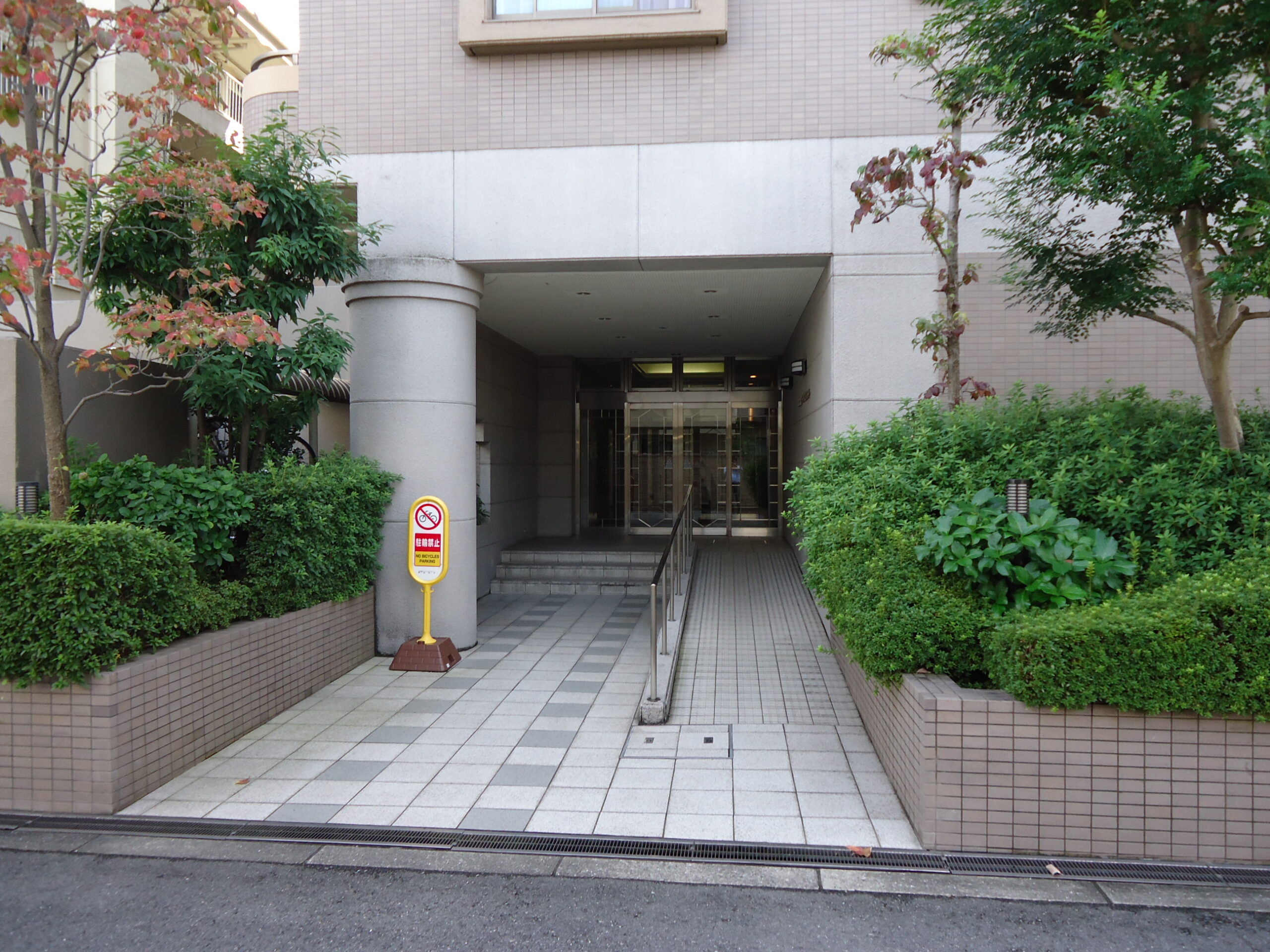 1階エントランスには、宅配ボックスも設置され外出時にも便利、セキュリティに配慮したオートロックシステムを採用しています。1階の住戸には専用庭があり、敷地内には駐車場のほか、バイク置き場や駐輪場があります。